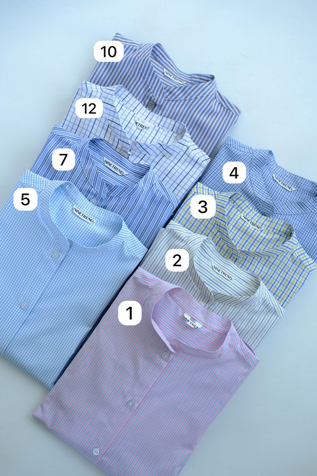 - Kemeja lengan panjang motif kotak- kotak dan stripe